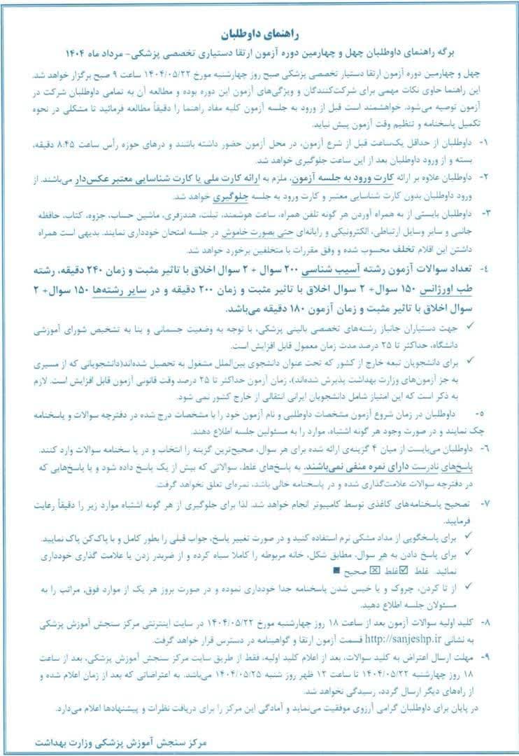 اطلاعیه چهل و چهارمین دوره آزمون ارتقاء دستیاری تخصصی پزشکی زمان آزمون