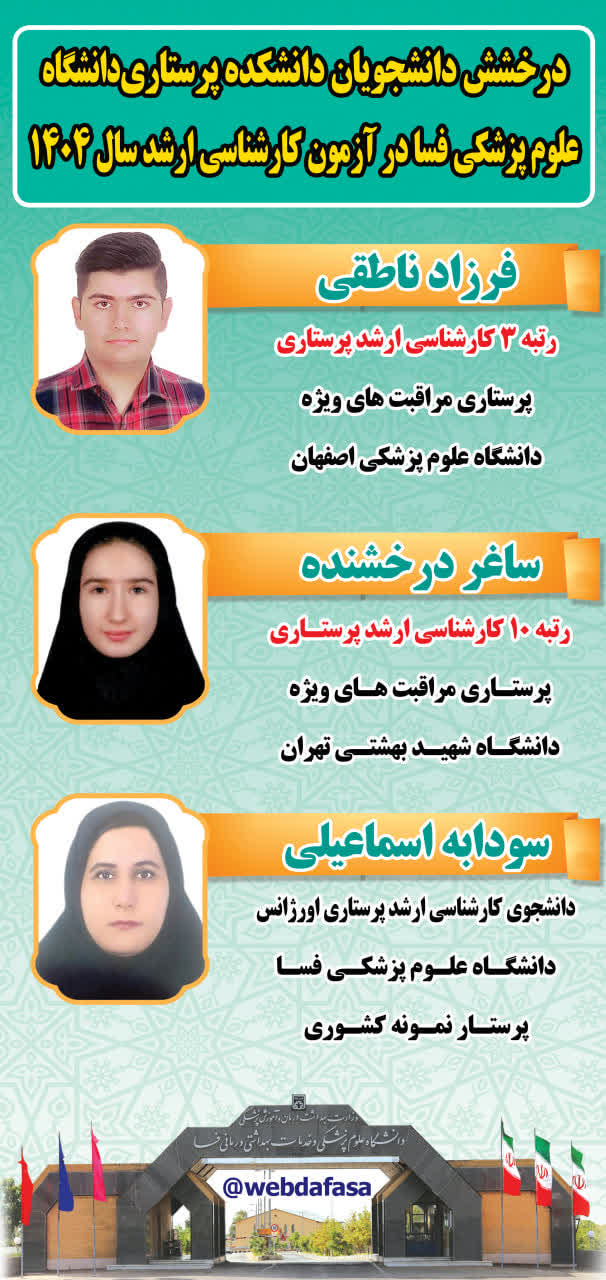 درخشش فارغالتحصیلان دانشکده پرستاری در آزمون کارشناسی ارشد 1404