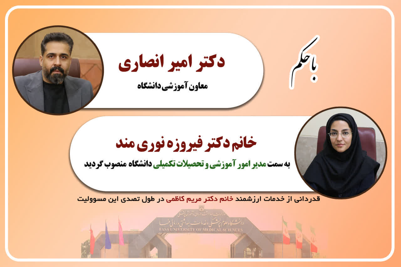 با حکم معاون آموزشی دانشگاه علوم پزشکی فسا؛